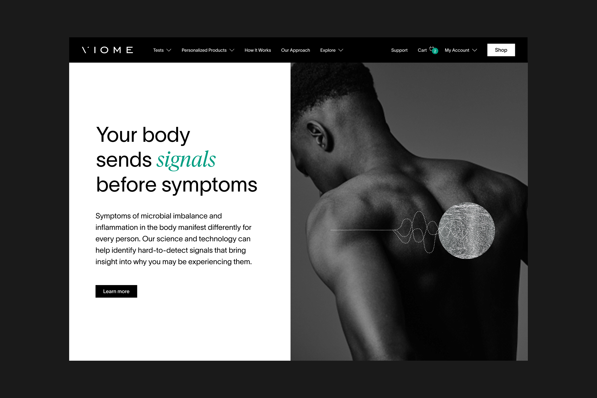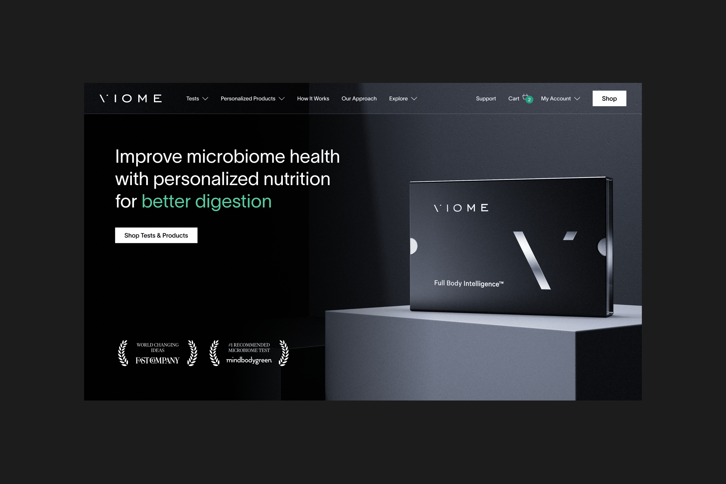 Viome’s digital experience is centered around its website and custom app. The website showcases the product line and details the company’s scientific approach, while the app serves as the primary platform for customers to receive and review their personalized health data and recommendations.