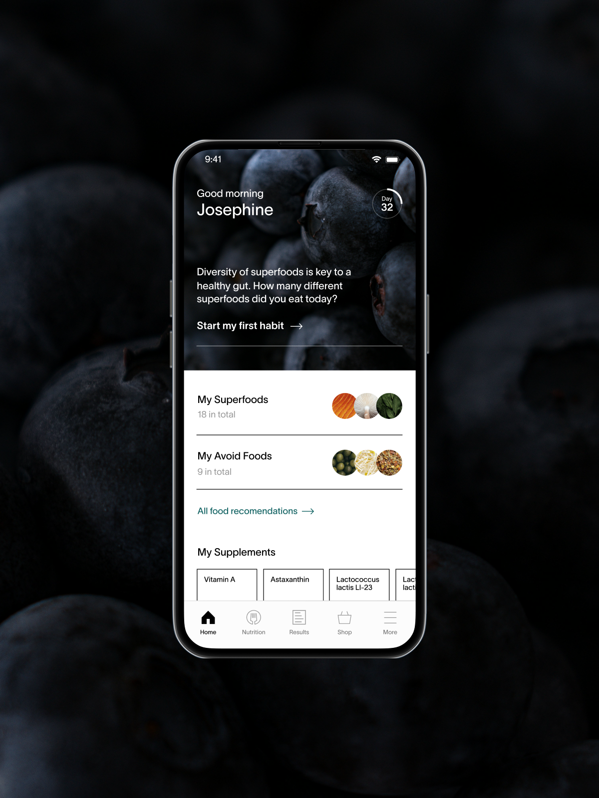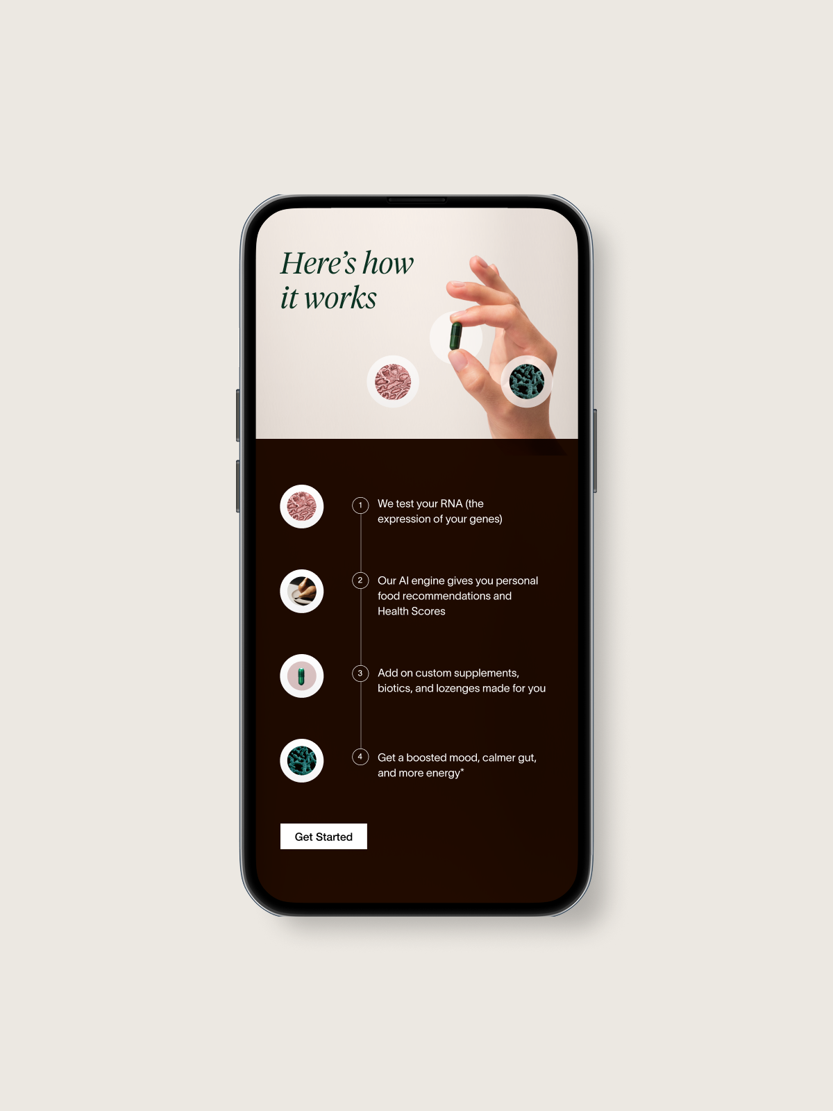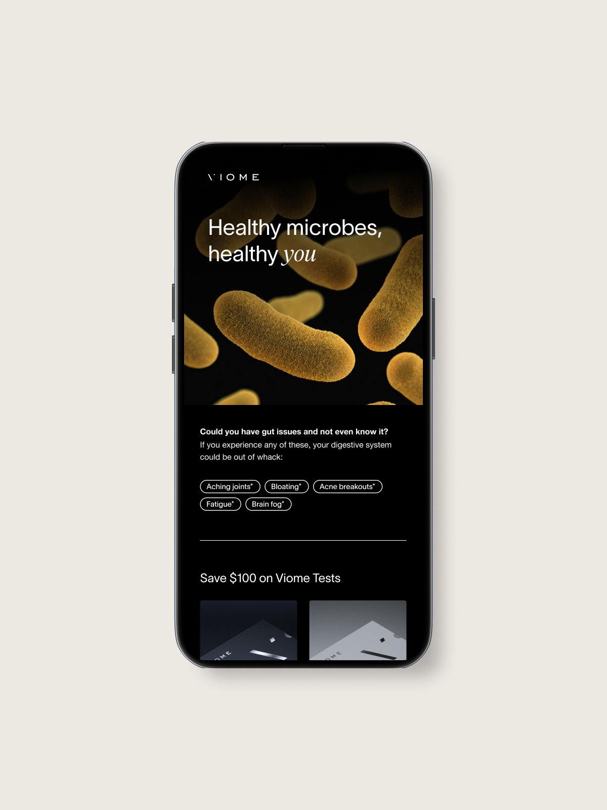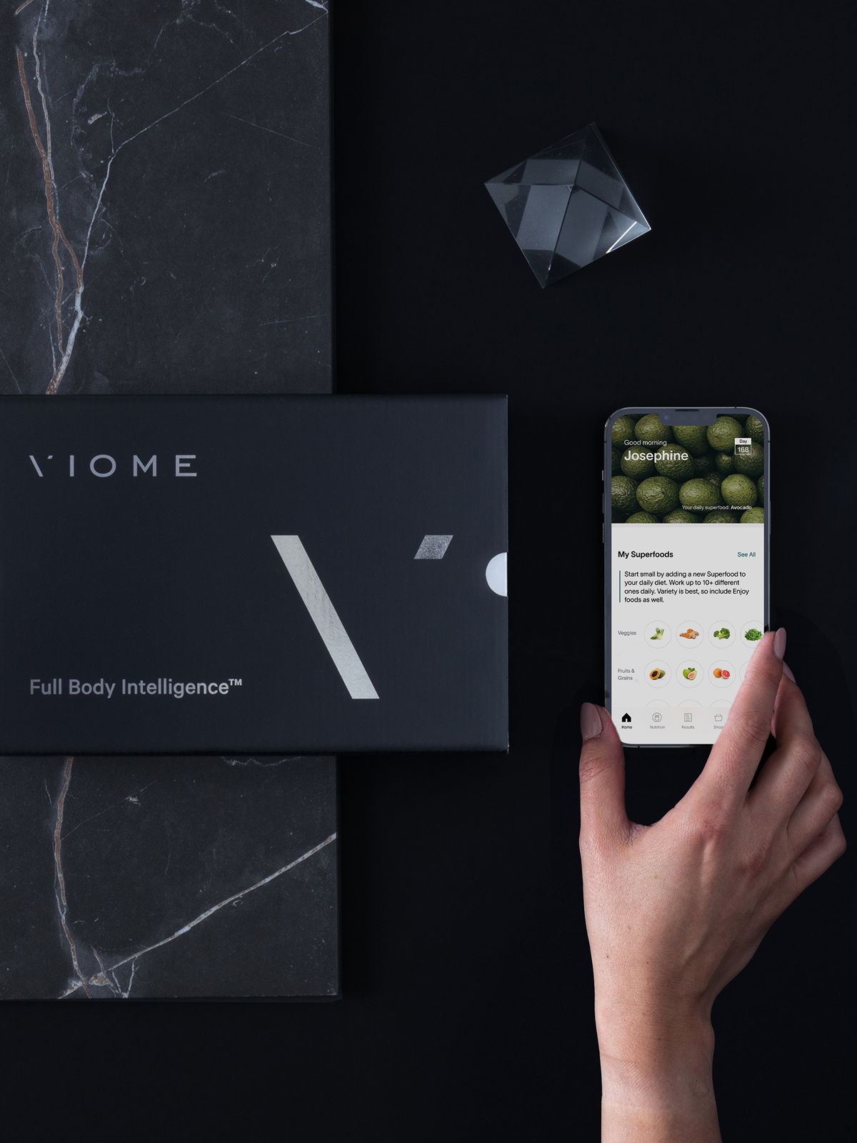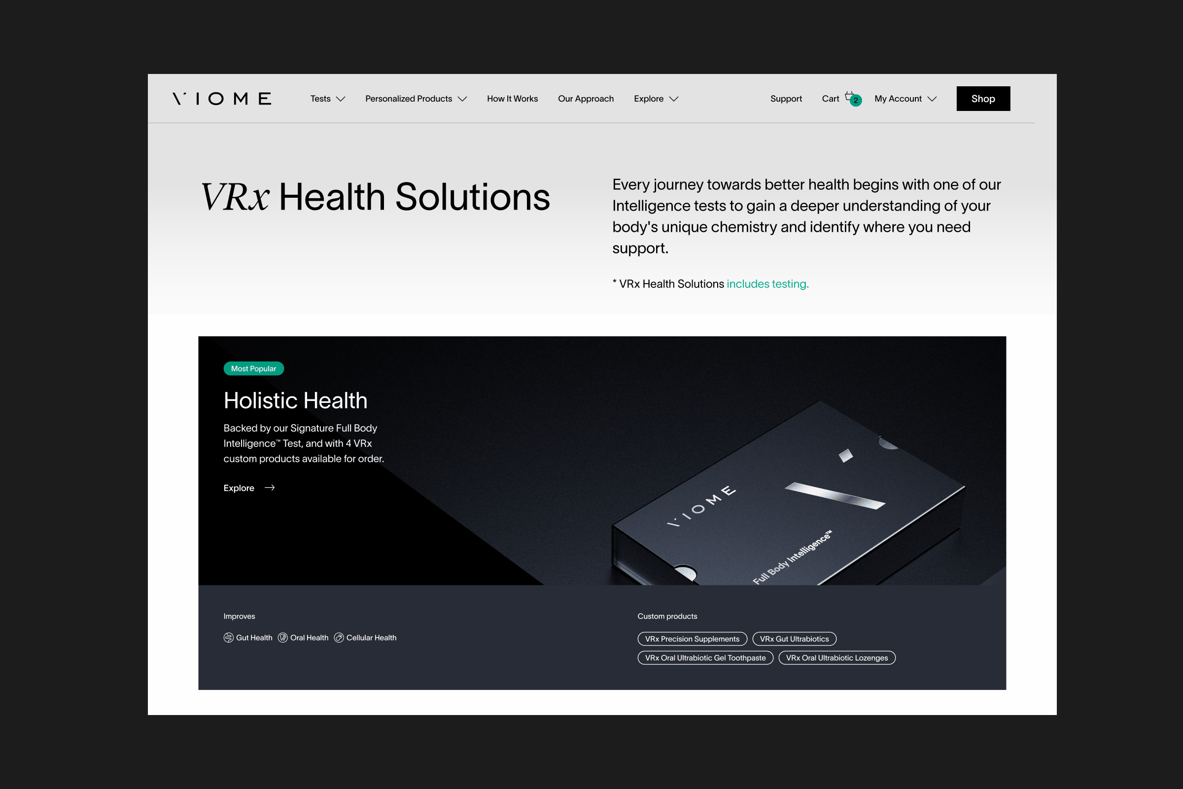 Key features—such as health scores, food recommendations, and custom supplements—are consistently highlighted across Viome’s brand. These elements are seamlessly integrated into product pages, marketing materials, and the app, ensuring a cohesive and informative user experience.